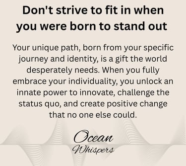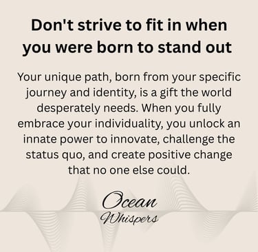 In a world that often pressures us to conform, daring to be yourself is the most courageous act of all. Your individuality isn't a flaw to be corrected, but a strength to be celebrated. By honoring your true self, regardless of societal norms or expectations, you inspire a ripple effect of acceptance and self-love that transforms the collective.